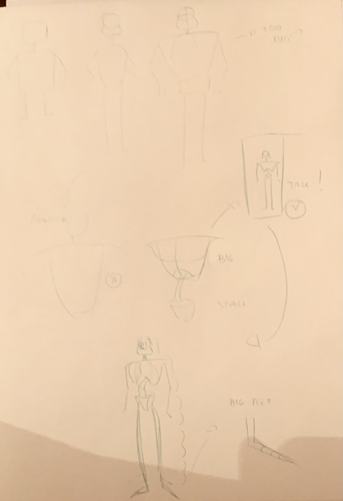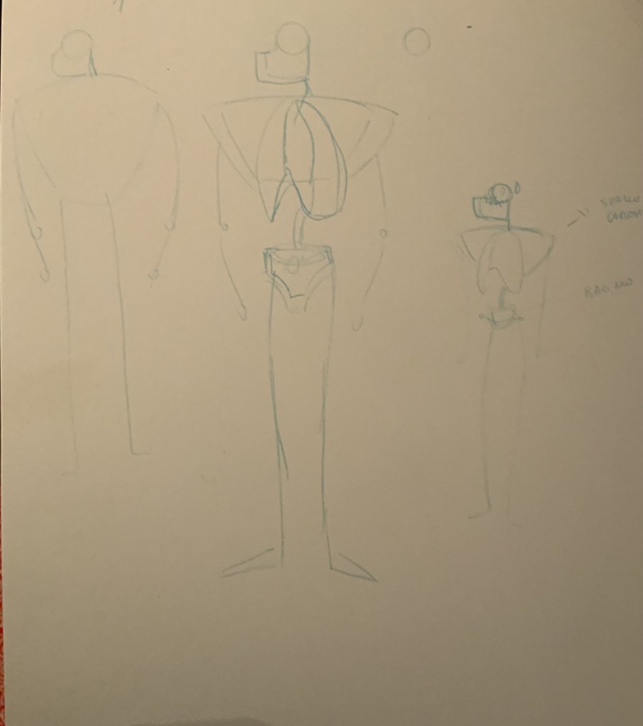 After this I decided I had to work first on some quick sketches to try and find some rough shapes of both the head and the general silhouette/ structure of the body.