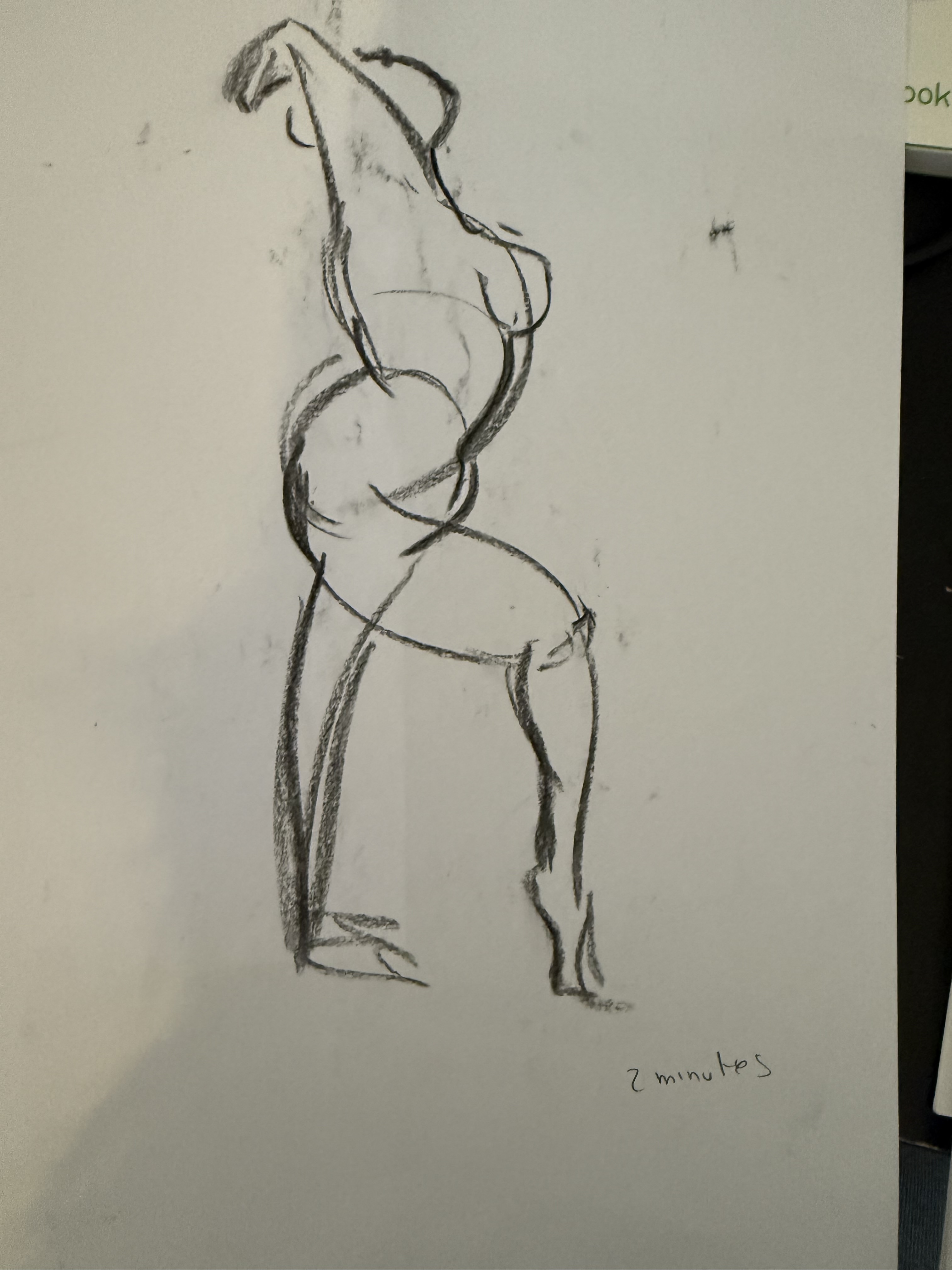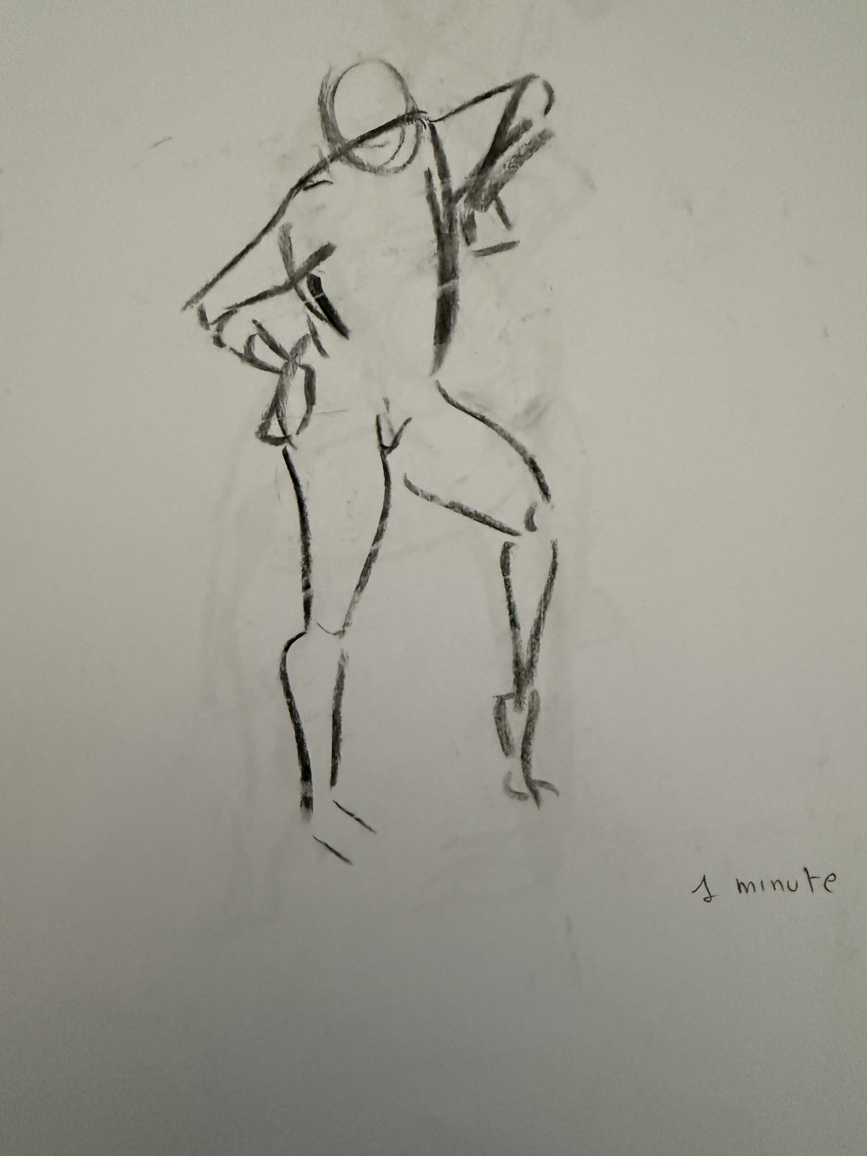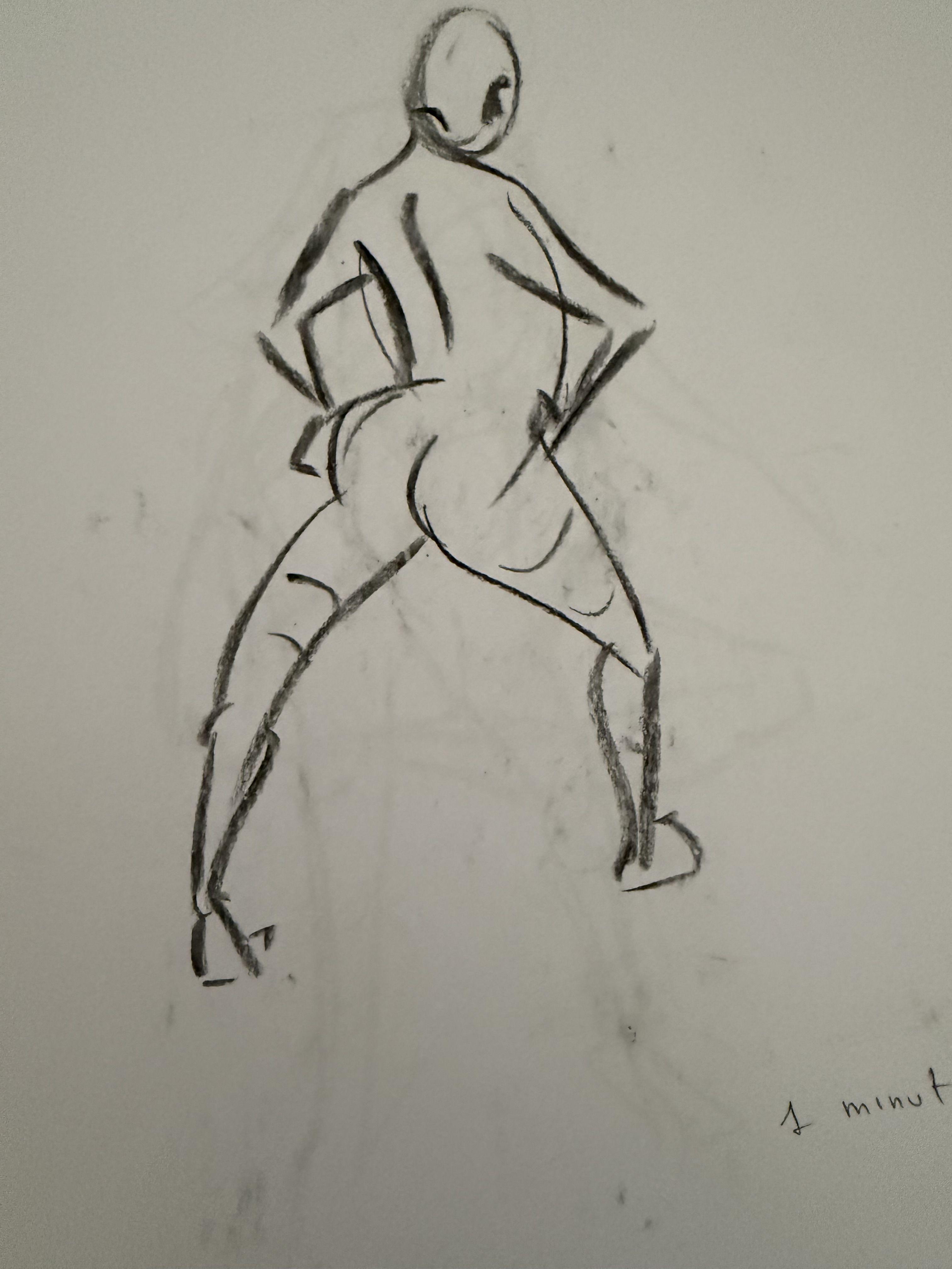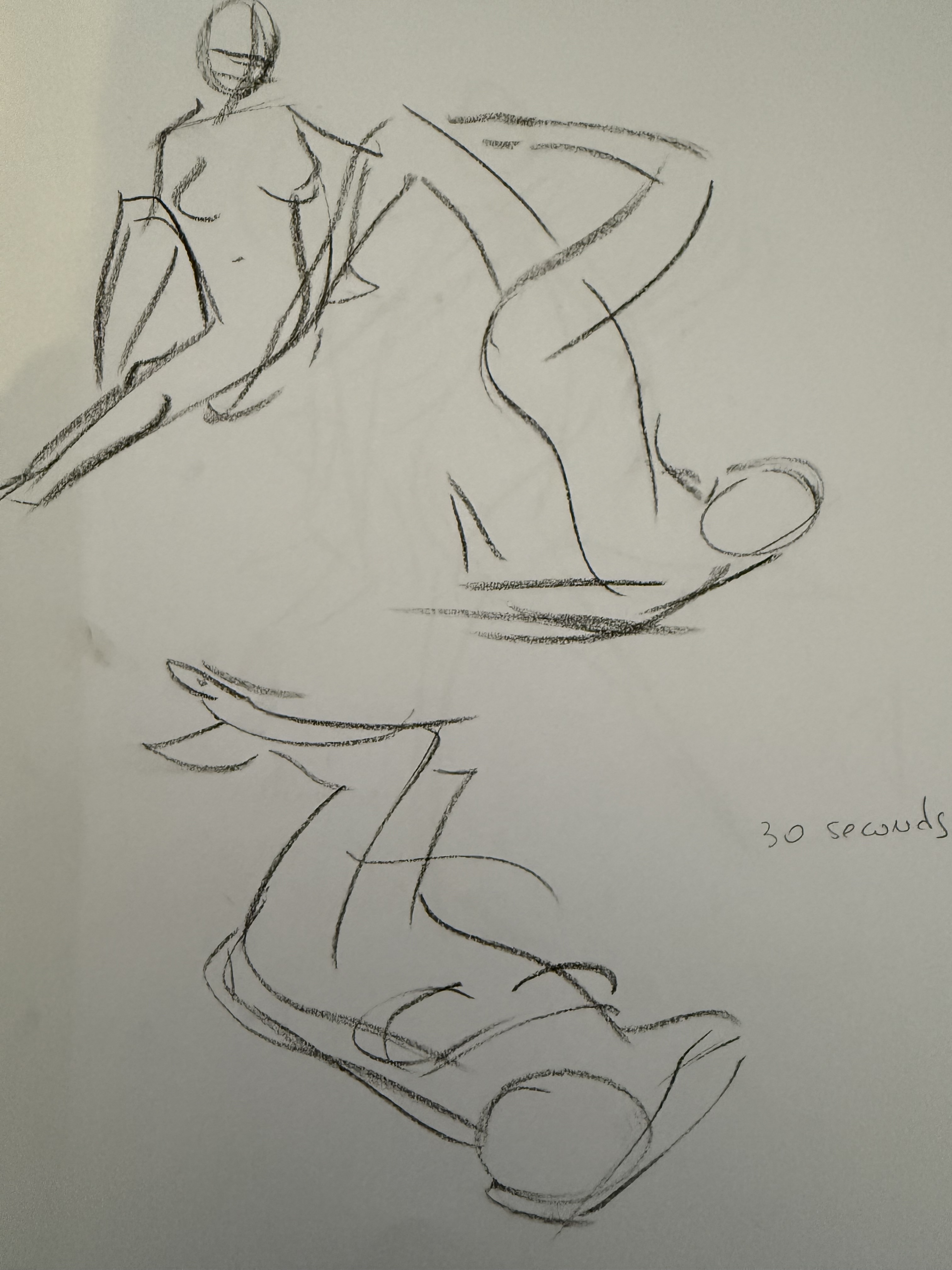 At the beginning of the unit, Paul suggested that we should practice figure drawing one hour a day, collect everything , chose the best ones and put them in a folder. This exercise is so useful and I am really grateful for this. I can , little by little , track miff there is any improvement or remind myself of how I felt while trying to capture the pose. I put myself to the test with very short poses and some longer ones. I plan to delve deeper into anatomy to understand the volumes and shapes better.