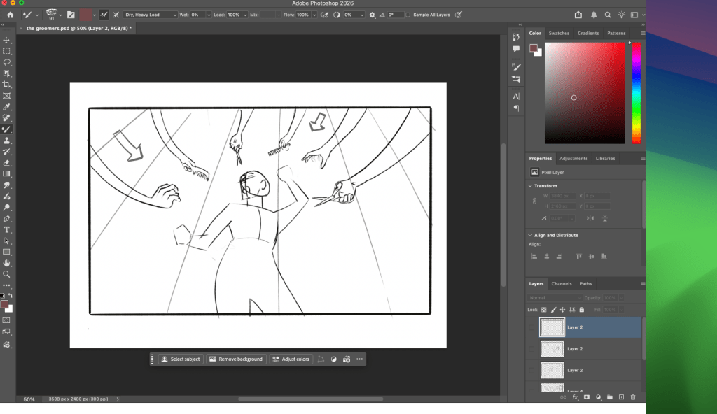 Since we didn’t have a lot of time, I proceeded to draw directly onto Photoshop.
