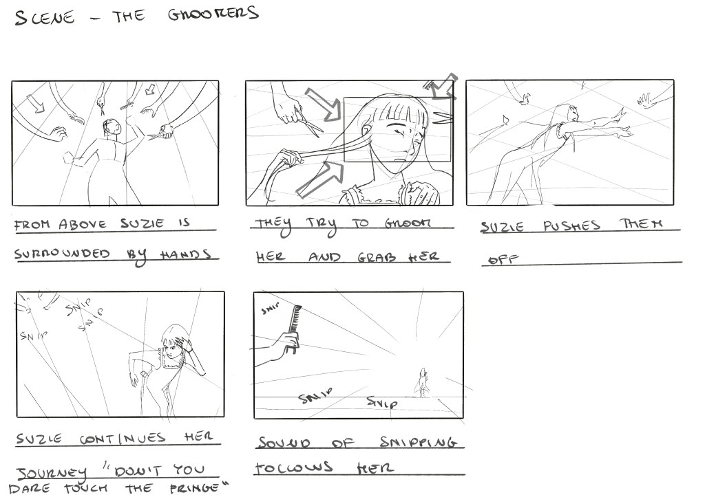 I asked to be part of the Storyboarding team and I was assigned two scenes : Pride (The Groomers ) and Anger (the bedroom).