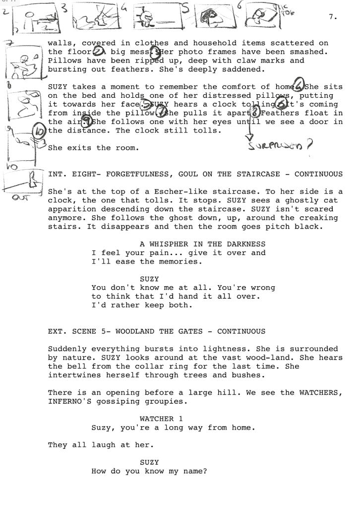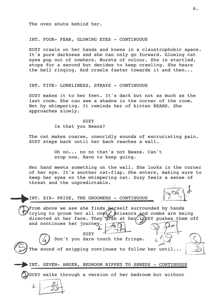 I started by taking a look at the script and putting down some notes and some thumbnails.